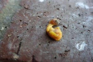 If both gouldian parents are young, usually they don’t know what to do so they will tossed-out the newly hatched baby bird. The pictures below are from few days old babies which are also killed before I had a chance to provide assistance like putting them back to a nest box with babies of the same age or hand feed them until they can eat on their own.